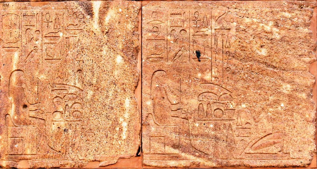 Cette assise comprend une série de scènes analogues où Hatchepsout est agenouillée et présente des offrandes posées sur une table à différentes formes d'Amon.