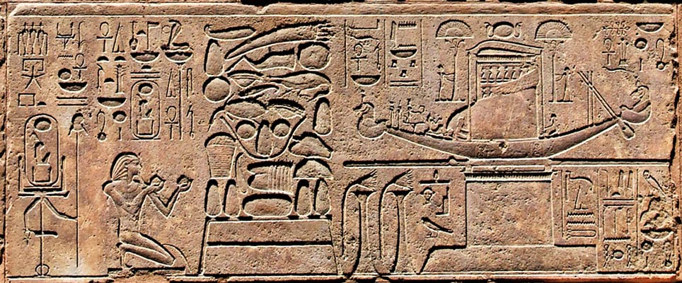 Scène 1 : Hatchepsout court vers Amon-Min en tenant la rame et le gouvernail.