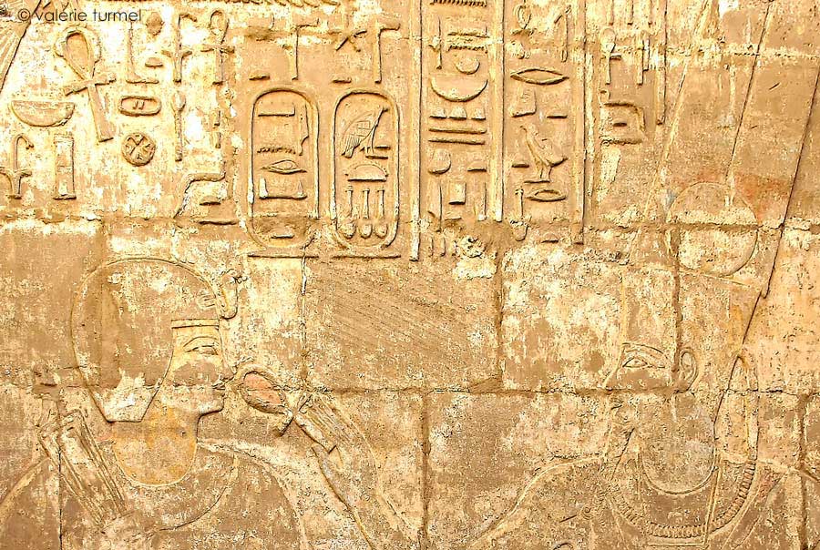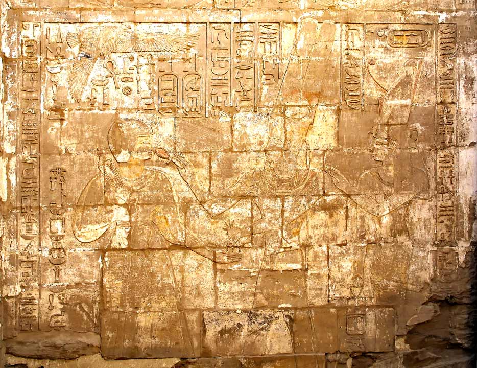 La divine adoratrice Amenardis I reçoit la vie donnée par Amon-Rê. Elle tient un sistre dans la main droite et reçoit une poignée de vies dans la main gauche. Amon dit qu'il lui donne la vie et la puissance. Derrière Amon, la déesse Mout, la grande, maîtresse d'Ichérou (son domaine à Karnak) donne à l'adoratrice toute vie, toute puissance et toute durée. (cf. Legrain)