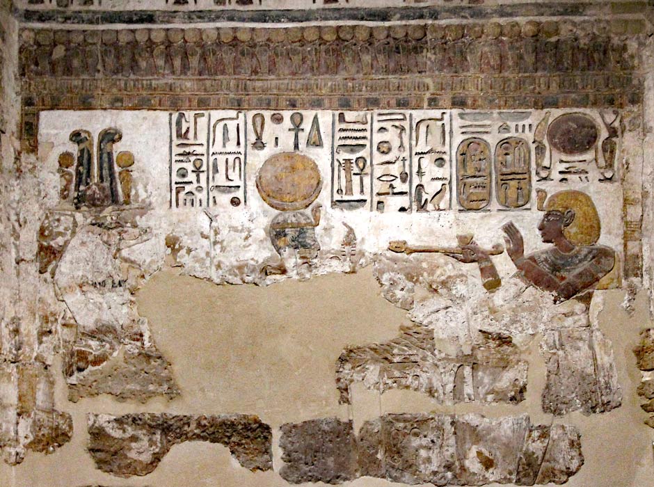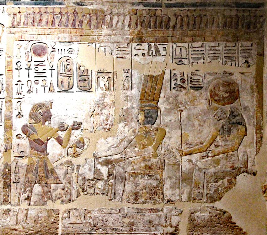 Ramsès III fumigène de l'encens devant Khonsou, le maître de la joie, et
