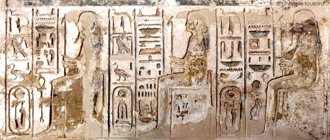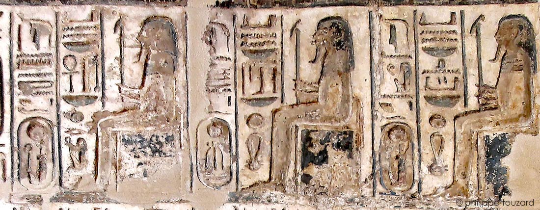 Chaque rangée de dieux se poursuit sur la paroi Est très dégradée.