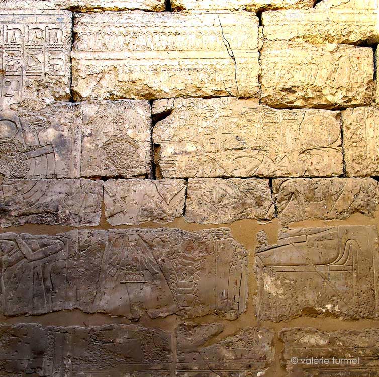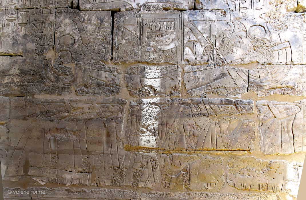 Cette scène se situe du côté Nord-Est, à la droite de la stèle portant le texte de l'oracle d'Amon. Hérihor fumigène de l'encens devant la barque de Khonsou portée par des prêtres. De ce personnage, il ne reste plus que l'encensoir, Hérihor ayant été supprimé lors de l'installation de la stèle Khonsou dans Thèbes Neferhotep, fils aimé d'Hérihor, remercie le roi pour ce beau monument. Le dieu donne au roi en contrepartie toute une série de dons depuis la vie..jusqu'aux Neuf Arcs sous sa férule. Behedety accorde lui aussi des dons au roi.(OIP 100 pl.69 B; Cfeetk scène 2.e)