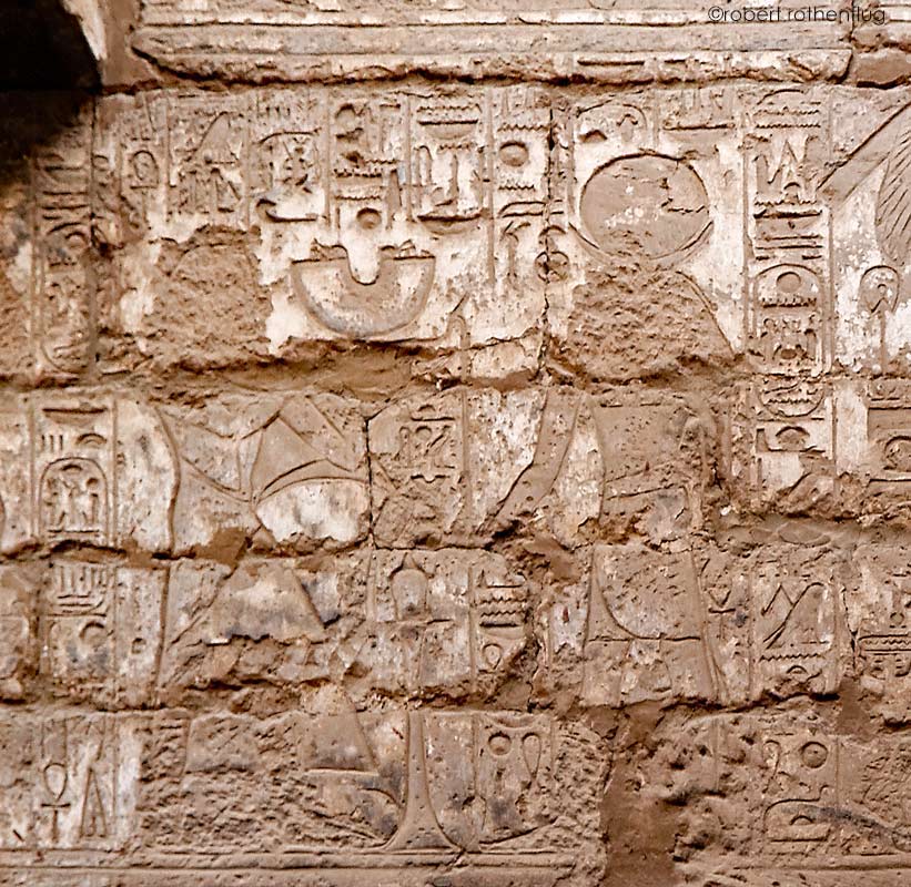Derrière le roi, Thot inscrit pour le roi les jubilés de Rê et les années d'Atoum. Il lui donne vie et puissance comme Rê.(OIP 102 : pl.189)