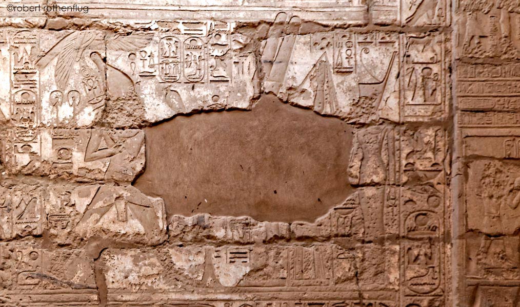 Ramsès XI agenouillé fait l'offrande de la Maât à Amon en présence de Mout, Khonsou et Thot. Le discours d'Amon est perdu. Mout, la dame d'Ichérou, donne au roi toute vie, puissance et toute joie. Khonsou de Thèbes, Neferhotep dans Karnak, lui donne tout courage et toute victoire et lui accorde l'éternité en tant que roi.