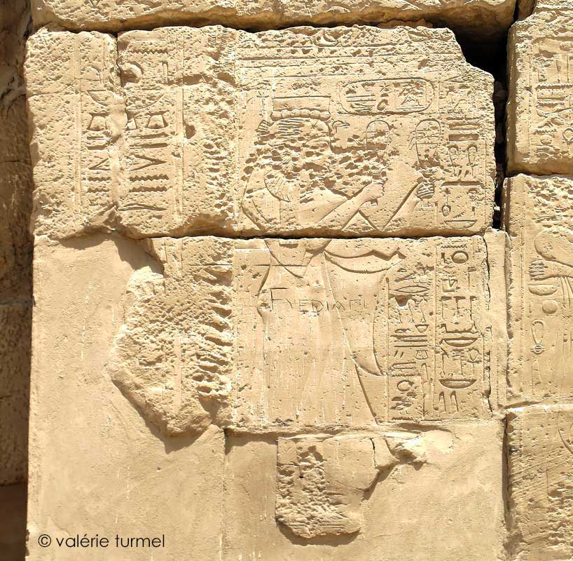 Hennouttaouy , épouse de Pinedjem Ier joue du sistre Son nom est inscrit dans un cartouche.