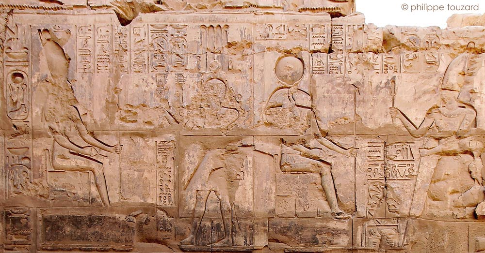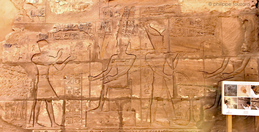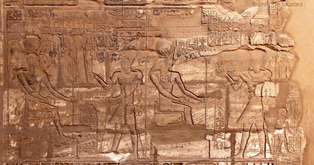 Auguste fumigène de l'encens et verse une libation devant Khonsou.