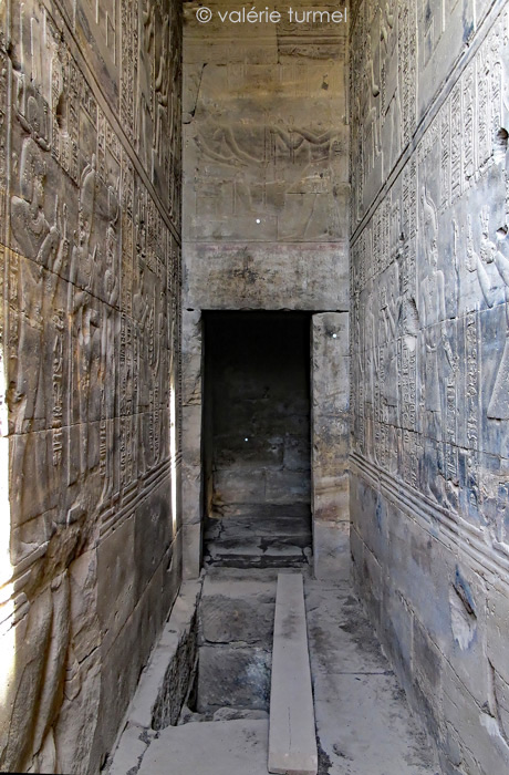 Le second tronçon du corridor mène à la porte de la chambre des étoffes qui est restée anépigraphe. La scène au dessus de la porte est discutée ci-dessous. Une trappe ouvre sur un descente vers les cryptes (?)