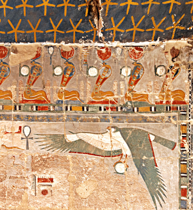 Behedety est le disque solaire ailé, l'Horus de Behedet. Il donne la vie à la reine.