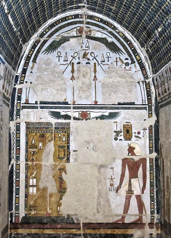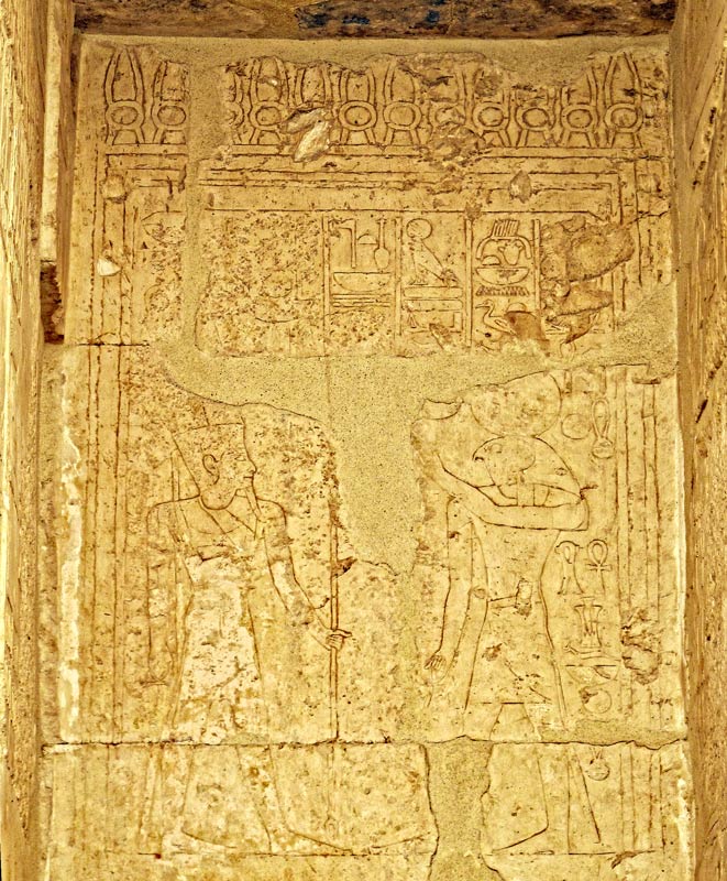 La reine Hatchepsout devant un dieu.