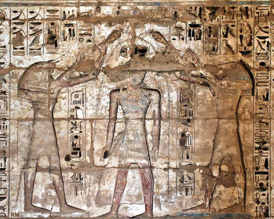 [Ptah, Sekhmet, Amon, Mout, Osiris][Amon-Rê-Kamoutef, Isis, Horus][Atoum, Sechat, Behedety, Thot][La triade thébaine]