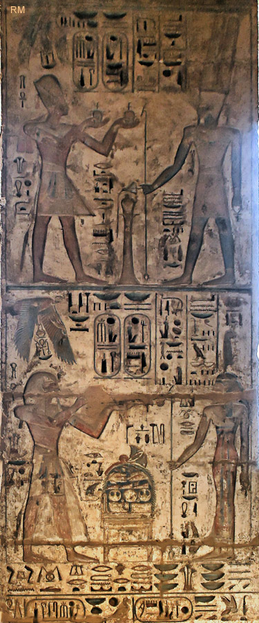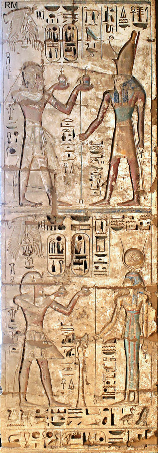 Côté nord : le roi offre du lait à Horus fils d'Isis qui lui donne toute vie, toute stabilité et tout pouvoir