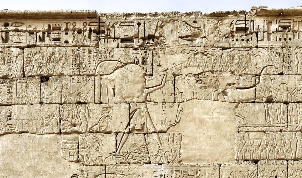 Sur le côté du pylône, cette scène de bataille concernerait des villes hittites.