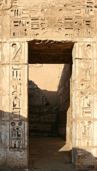 Entrée de la chapelle 3 dédiée à différentes divinités avec les titulatures de Ramsès III.