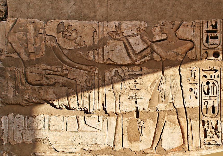 Paroi Est : Le roi offre la Maât à Nefertoum.