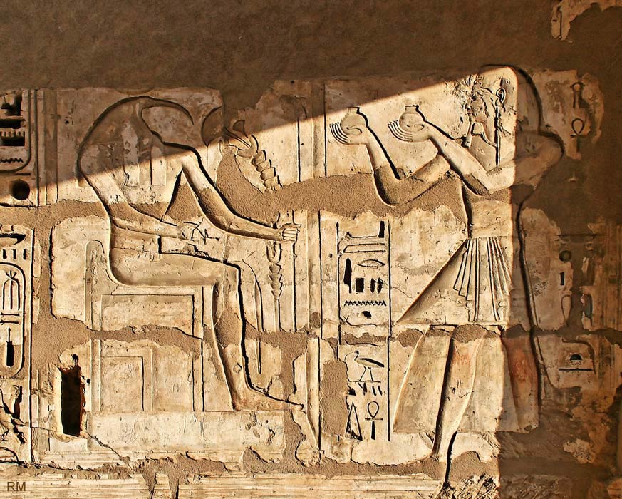 Paroi Est : Le roi oint l'emblème d'Horus fils d'Isis.