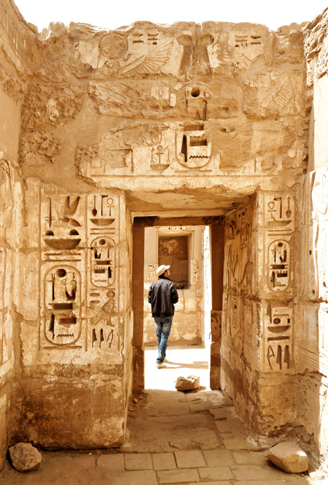 La porte d'entrée est décorée des titulatures de Ramsès III,