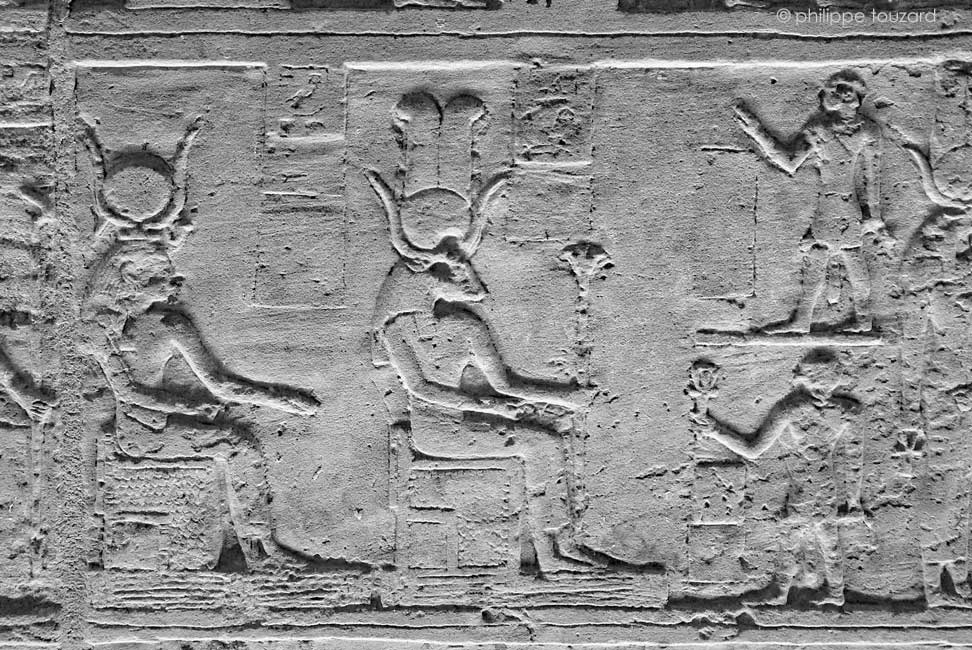 Osiris repose sur Hathor et sud Khnpom., qui réside dans son temple.