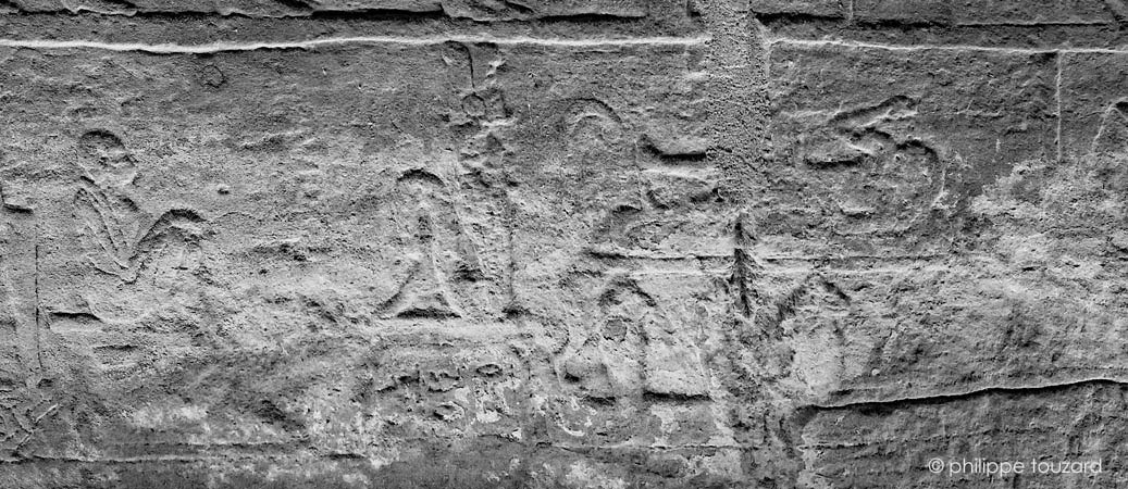 n°7. Un faucon à tête humaine (Horus?) se tient avec un grand couteau et transperce un crocodile.