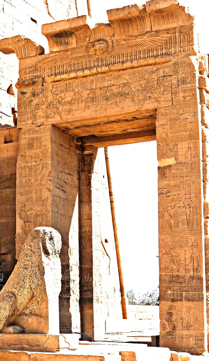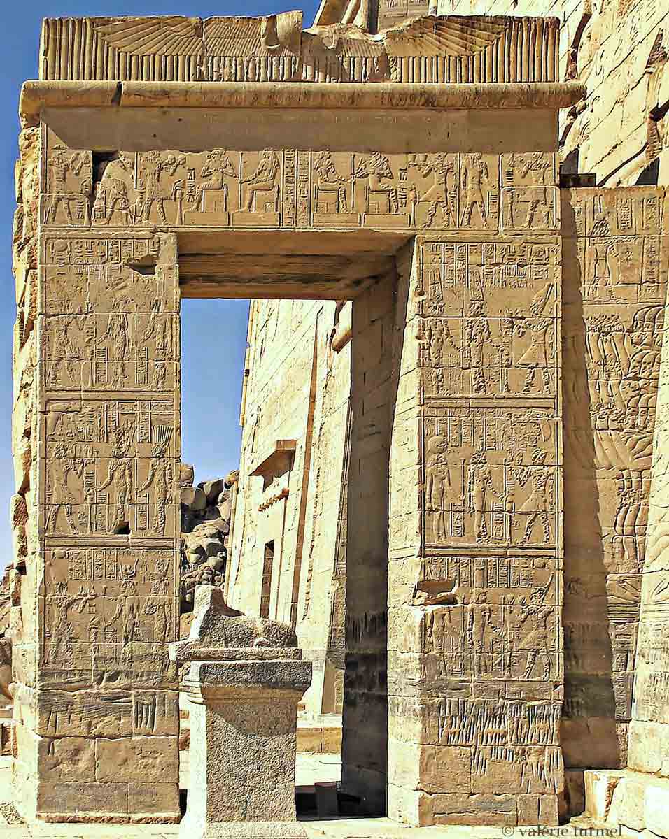 A droite le petit muret avec les inscriptions du môle et le dieu Sopodou, maître des montagnes de l'est. qui tend un glaive au roi.