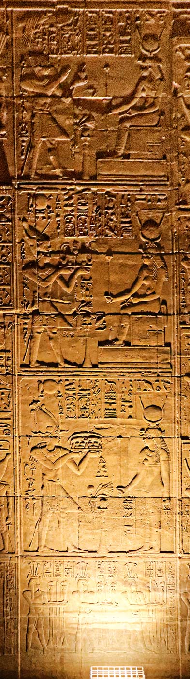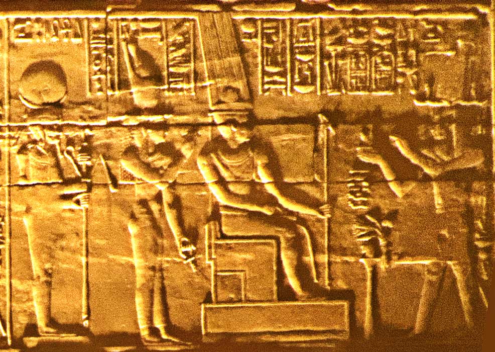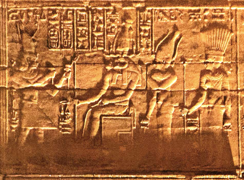 Le roi offre un plateau de victuailles à Isis qui lui donne toute vie et tout pouvoir (ouas)