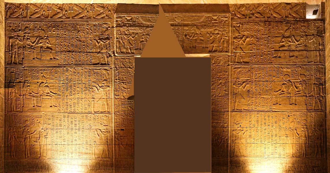 Les montants contiennent des textes et en dessous, des scènes où le roi reçoit la vie d'Isis.
