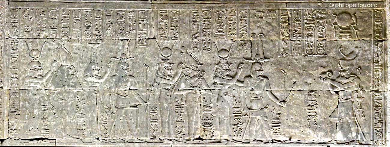 grand dieu qui réside à Edfou, qui est sur son lit dans sa crypte et Shentayt la vénérable qui réside à Edfou.