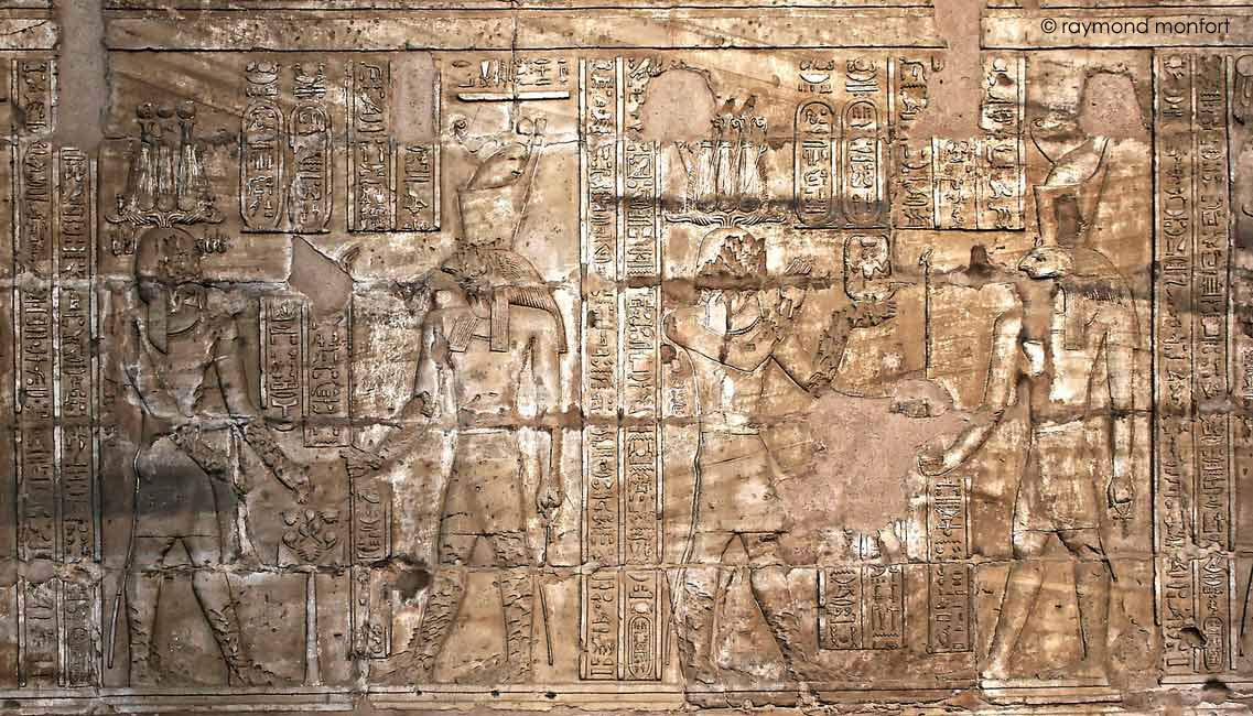 Le roi Ptolémée IX Soter II fait l'offrande de pains à Horus de Behedet.