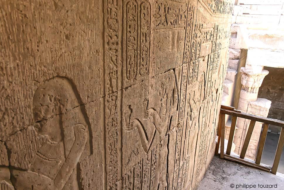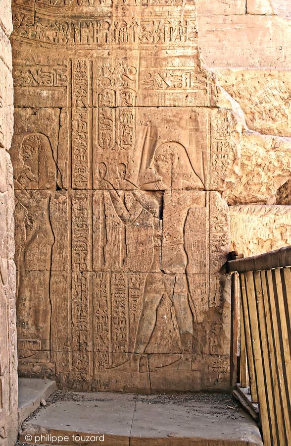 De la paroi Sud il ne subsiste que 2 figures dont celle ci-contre, une femme portant des fleurs. Il manque environ 4 mètres de cette paroi ruinée qui faisait la jonction avec la procession de la paroi Est qui arrive sur le toit.