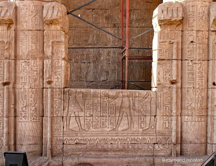 Le roi Ptolémée IX Soter se tient en adoration Horus et Hathor.