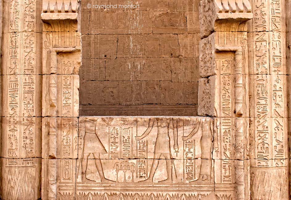 le roi est tourné vers l'axe de symétrie du mammisi.