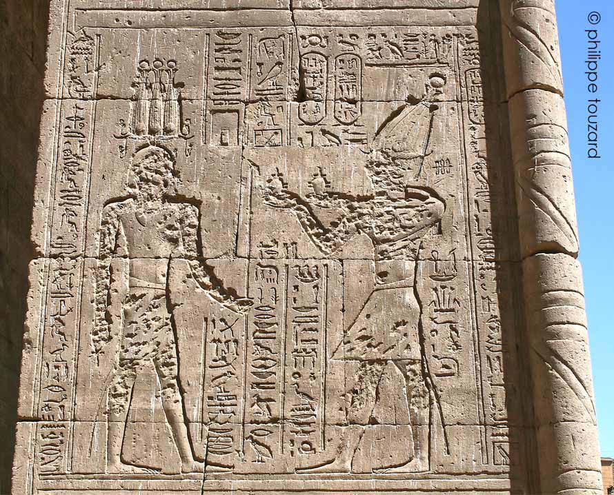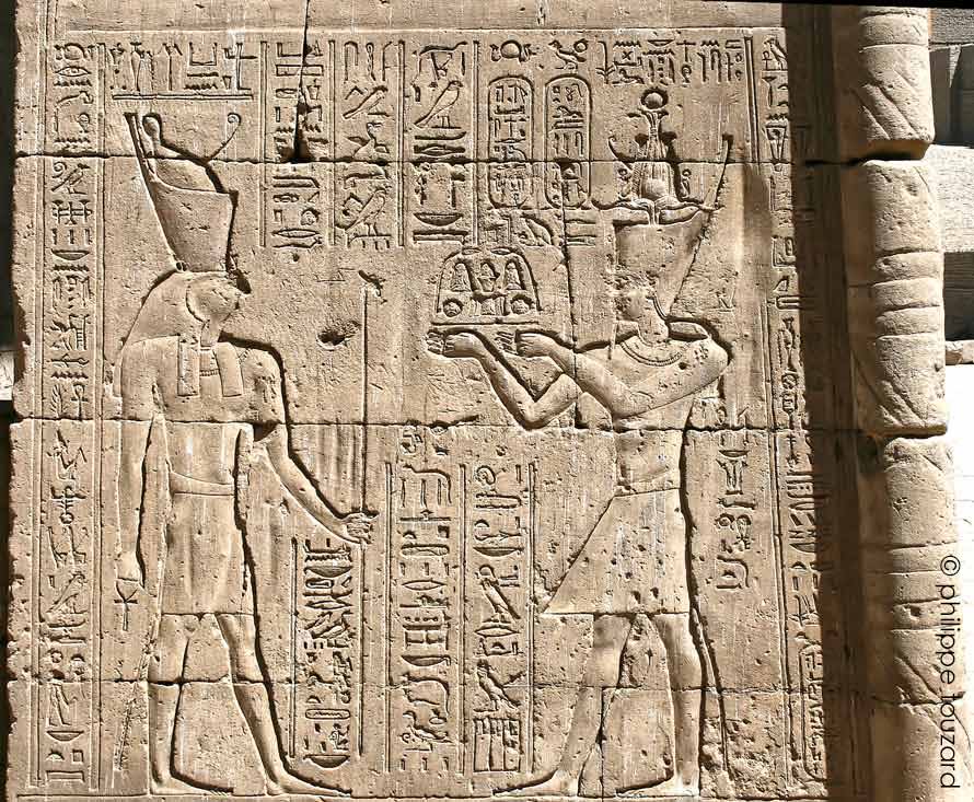 Le roi Ptolémée IX Soter offre différents pains sur un plateau