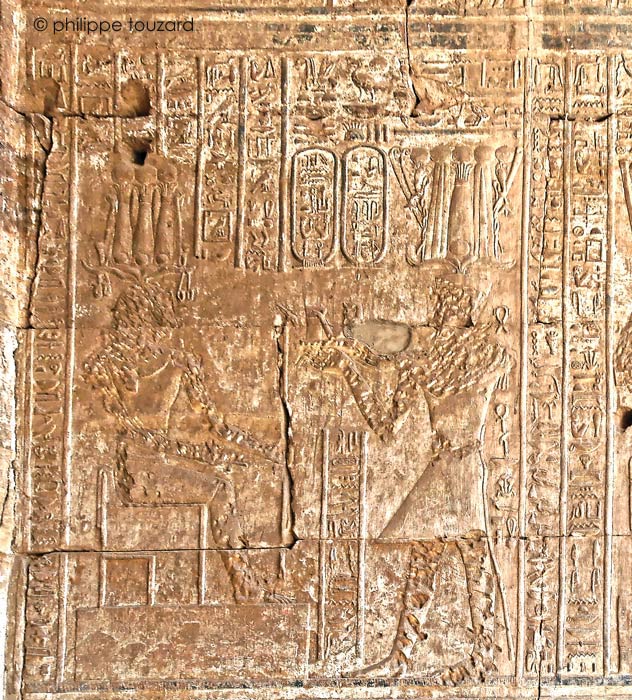 Le roi Ptolémée IV offre un vase Nou à Horus de Behedet.