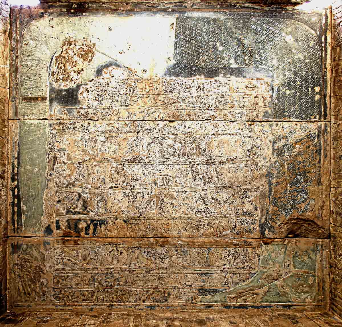 Le corps de Nout est du côté de l'entrée de la salle. Cette représentation est malheureusement dégradée.