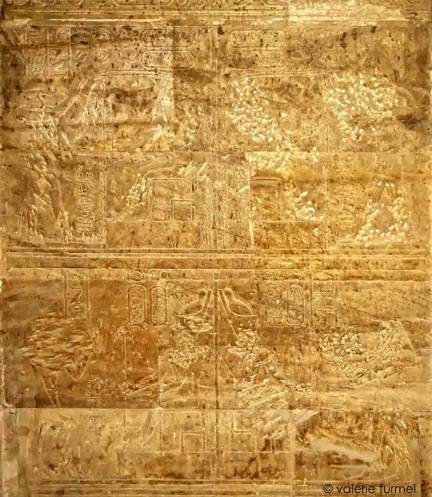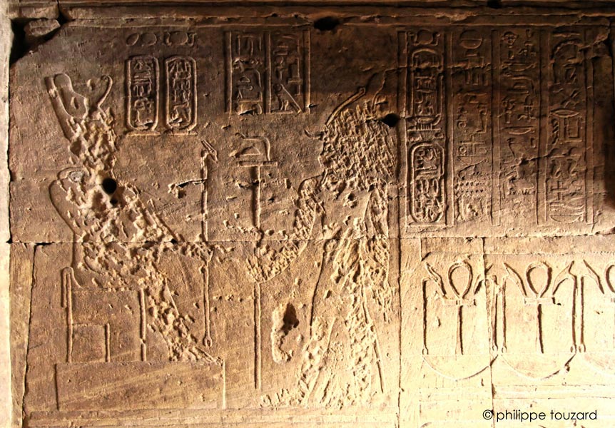 A droite, des signes prophylactiques. A gauche, le dieu de l'éternité Hehe donne au roi l'éternité en tant que roi.