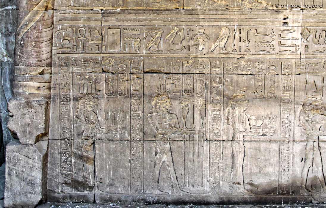 Le roi Ptolémée Viii Evergètes II conduit un défilé de 20 porteurs de présents vers la Triade d'Edfou.
