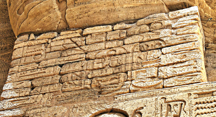 Ce muret de brocs de grès a été mis en place par Sethy II dont les cartouches sont gravés :