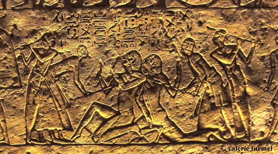 Trompé par deux espions du roi hittite, qui lui ont affirmé que le roi hittite était loin avec son armée, Ramsès II a tranquillement installé son campement au nord ouest de Qadesh. Les événements s' accélèrent : 2 éclaireurs hittites ont été capturés par les troupes du pharaon et sous la bastonnade ils viennent d'avouer que l'armée du roi hittite est derrière