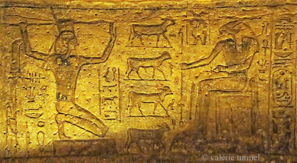 Ramsès II consacre les 4 veaux devant Khnoum assis.