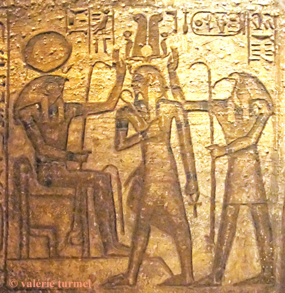 Ramsès II est introduit par Thot devant Rê-Horakhty qui bénit sa couronne.