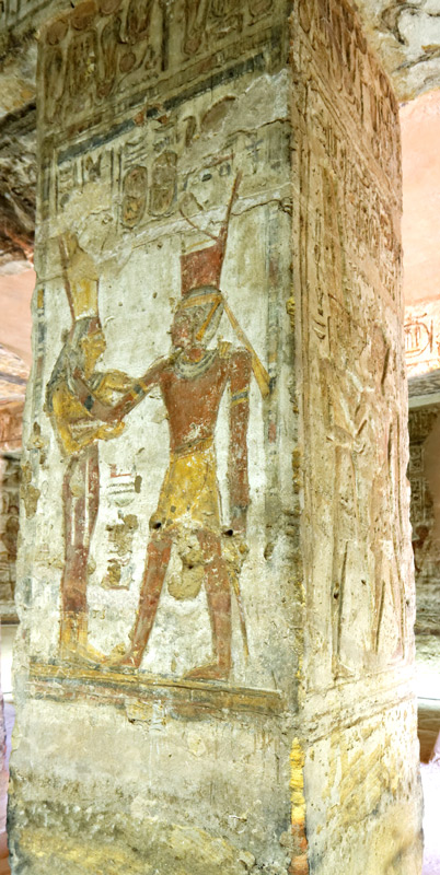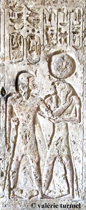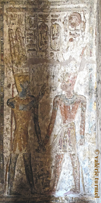 Face Sud : le roi reçoit la vie d'Osiris.. Face Ouest : le roi reçoit la vie d'Amon-Rê.