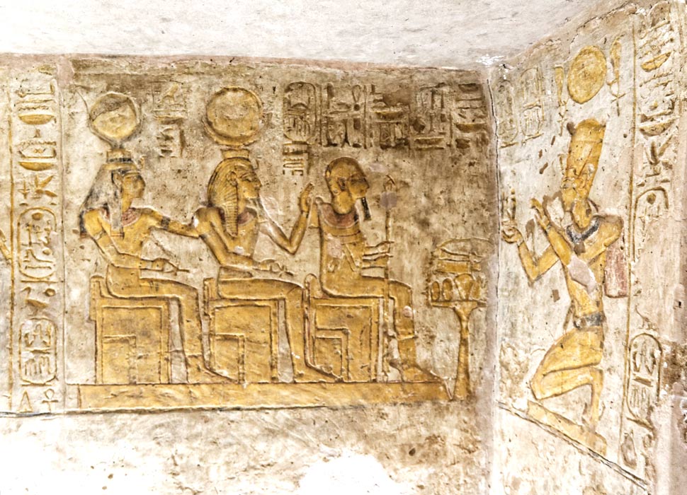La première scène est répartie sur 2 parois. A côté de la porte, le roi offre une partie de son prénom