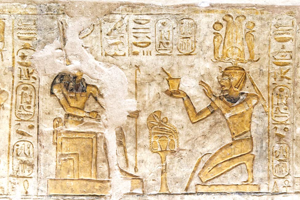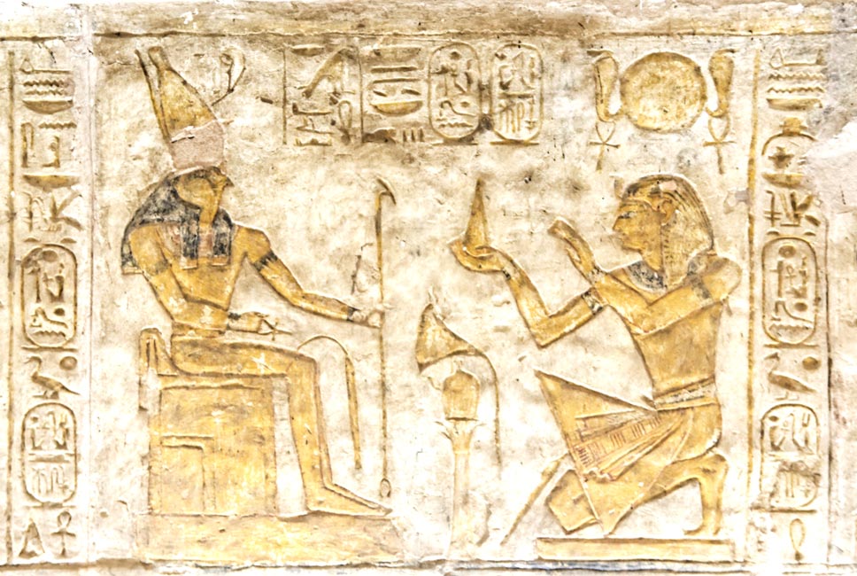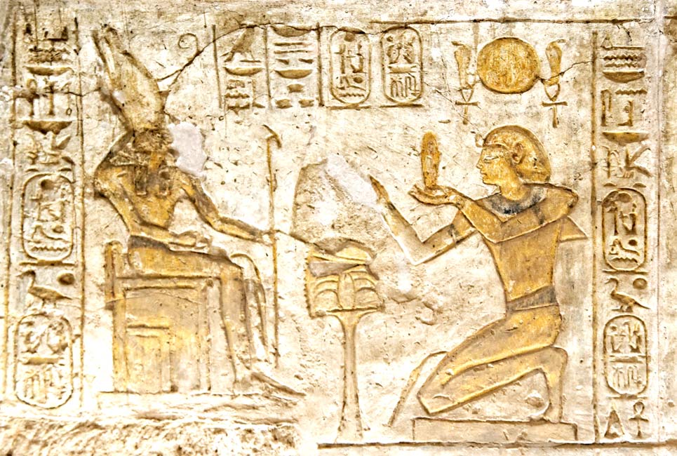 Le roi Ramsès II offre un pain à l'Horus de Miam qui lui donne toute la santé.