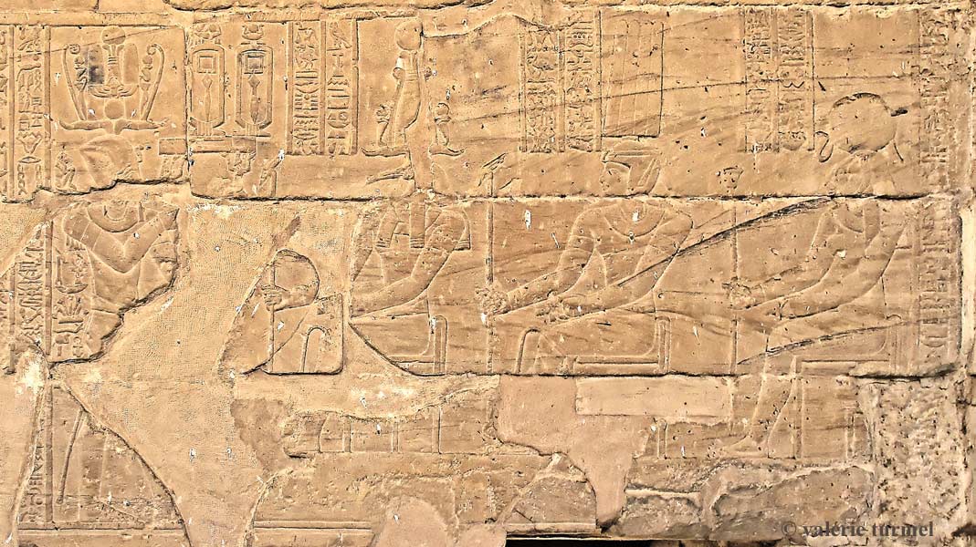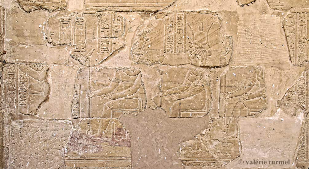 La scène est rès détruite.Lle pharaon est devant Isis.