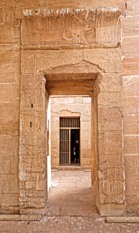 A travers la porte sud, vue sur la porte d'entrée du sanctuaire d'Ergamenes.