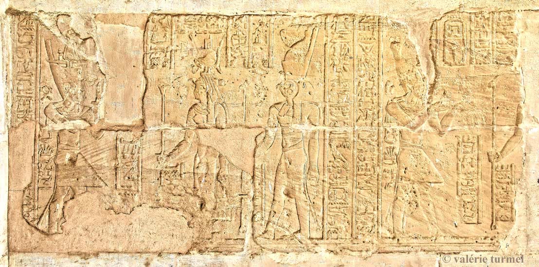 Auguste offre un champ à Isis et Horus, fils d'Isis et d'Osiris. Les inscriptions des offrandes des dieux sont perdues.
