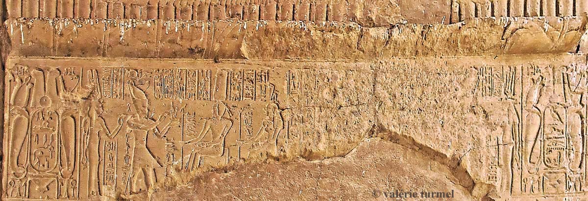 Le roi offre du vin à Hathor. La déesse lui donne tout ce qui pousse sur la terre.