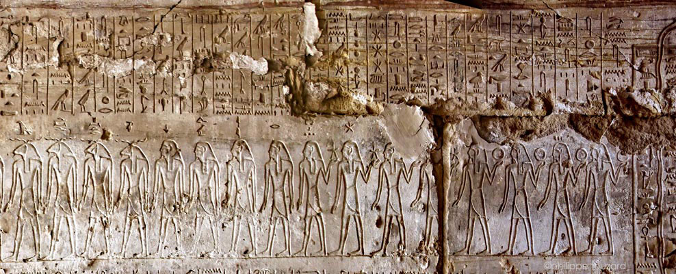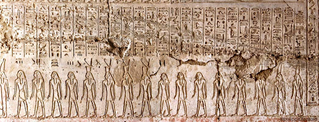 5 dieux armés de grands couteaux suivent 4 autres dieux à tête de chacal (voir ci-dessous)forment les 'tueurs' d'Apopis.