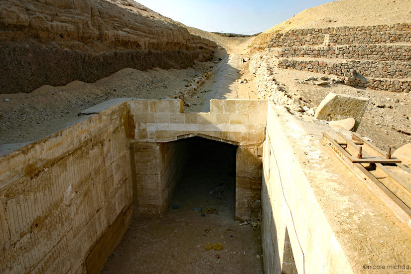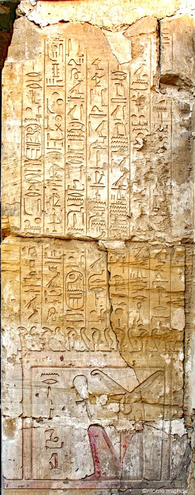 En dessous du texte se trouve une chapelle dans laquelle se tient le dieu Nery, un vautour avec deux grandes plumes et tenant le signe ankh.