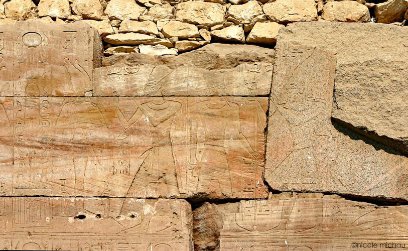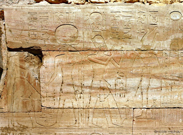 À genoux, Merenptah en posture d'adoration.