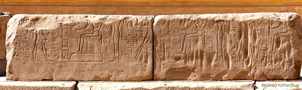 Dans la colonne de texte de droite, le nœud d'Isis dans un cartouche renvoie au nom de Sethy 1er.